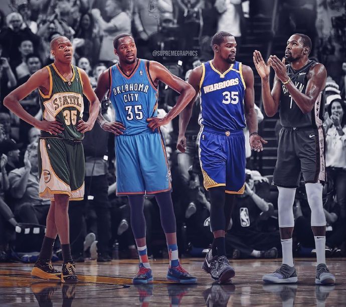 杜兰特——在超音速起航,随后球队更名为雷霆,自由球员加入勇士夺冠,今夏他选择加盟篮网;