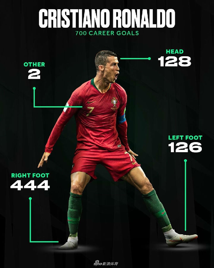 葡萄牙VS乌克兰的比赛中,C罗斩获进球,生涯总进球数达到700球。在C罗实现这一壮举后,各路媒体和球迷纷纷发布海报称赞。