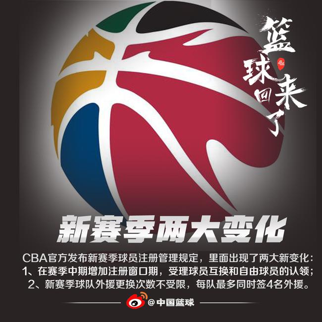 另外,根据此前官方发布的新赛季注册、报名管理规定,新赛季CBA还将在赛季中期设置注册窗口期。