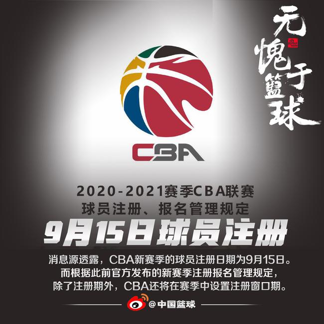 北京时间8月31日,据悉,2020-21赛季CBA新赛季的球员注册日期已经确定,将会是北京时间的9月15日。
