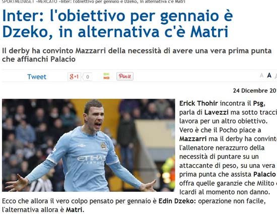 如果情况持续恶化下去,哲科在1月份选择转会也不是不可能,国米要做的就是说服佩莱格里尼放人,毕竟智利工程师还把波黑人看作是重要的轮换球员。当然,如果无法得到哲科,马扎里也准备了B计划,米兰前锋马特里将成为哲科的替代者,红黑军团准备在1月清洗这名水货,国米希望能以租借方式引进。