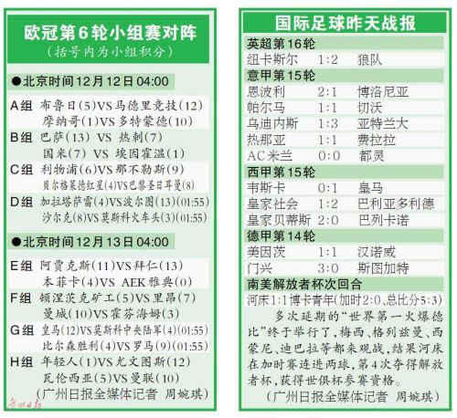 北京时间明天凌晨,2018~2019赛季欧冠将展开第6轮即,一轮小组赛的争夺,本赛季欧冠16强已经产生了12席,,4个席位花落谁家,焦点要看英超与意甲球队的PK,还要看法甲球队能否避免全军覆没的命运。