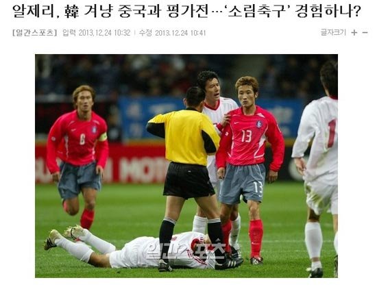 日前,有消息称阿尔及利亚打算邀请中国队热身,为备战2014年,小组赛和韩国队的比赛,韩国媒体拿这一新闻再次对中国足球进行污蔑性报道。