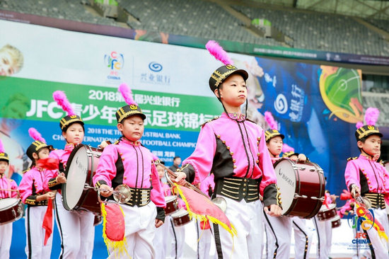 人民网北京11月19日电 传递足球精神,点燃足球希望,2018年11月17日下午,2018第三届兴业银行JFC青少年国际足球锦标赛总决赛开幕式拉开帷幕,来自中国、韩国、日本、马来西亚、巴基斯坦等国的40支足球队伍,近千名球员及教练员汇聚在深圳市龙岗区大运中心,挥洒青春追逐梦想。