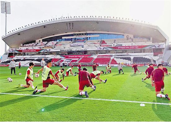 昨天,中国队球员在训练中。 新华社发