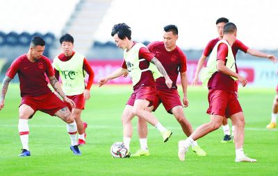 国足在昨天的踩场训练中。京报体育全媒体特派记者 刘平摄