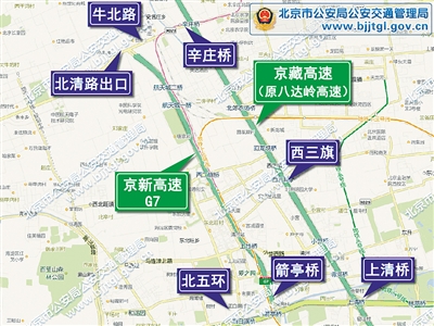 4、昌赤路遇车多行驶缓慢,可向110国道路经德胜口桥,环陵路去往十三陵景区。立汤路的东小口至北七家一旦发生拥堵,车辆由牛北路、定泗路向西绕回立汤路,向西绕行京藏高速辅线进出京。