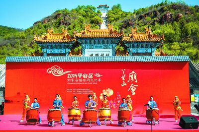 与往年相比,庙会增设了文化市集,故宫文创产品、桃花系列文创产品、平谷特色文化产品、非遗文化项目等精彩纷呈。游客在逛庙会的同时,可以感受当地浓浓的文化氛围。此外,景区还在日月同辉广场新增了直径2米的五面福鼓,寓意“五福临门”,游客可击鼓祈福。