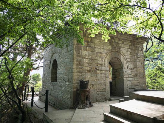 再接着我们会看到望月亭,在此南望苍穹东瞰谷,视野极为开阔。立于石凳之上,长啸一声,回音渺渺,心胸爽朗。