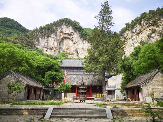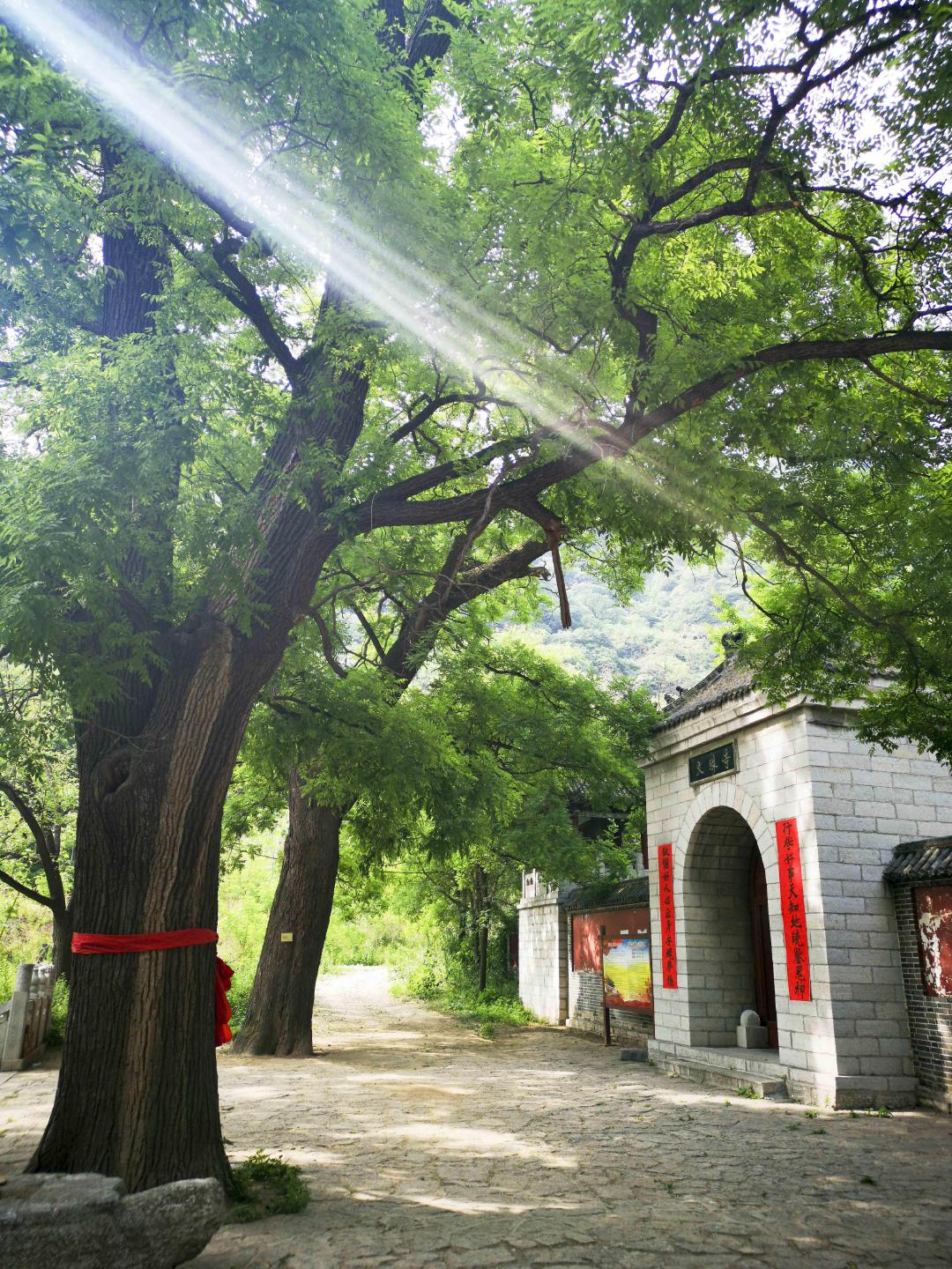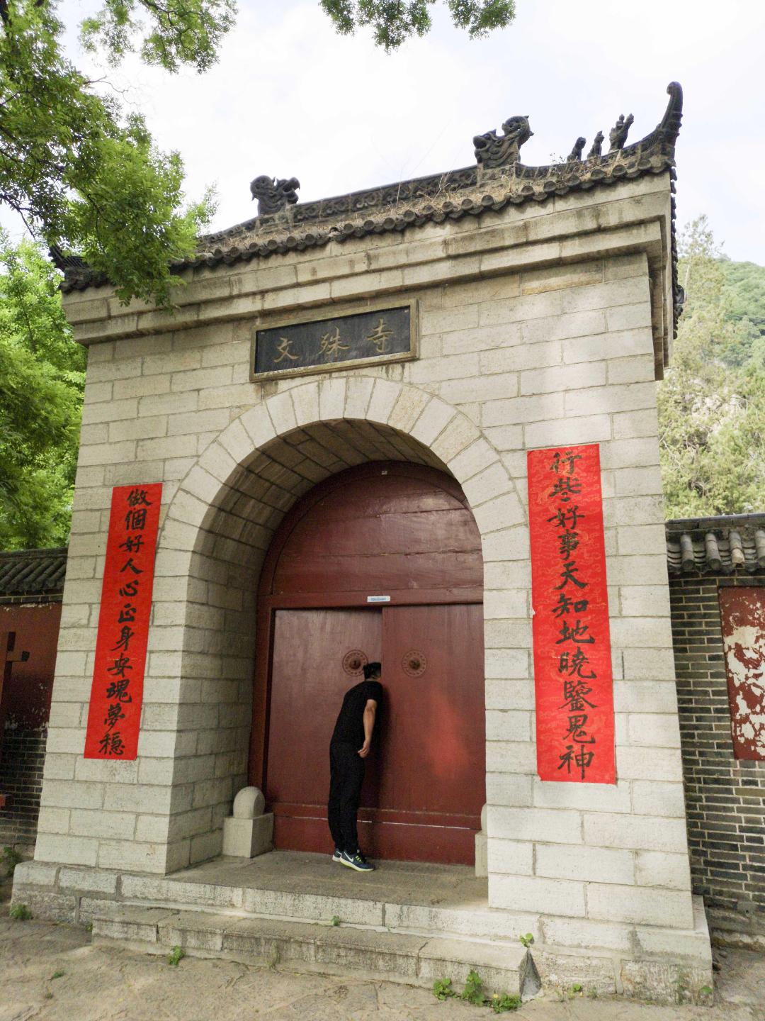 水帘洞位于仰天山山阴,口大洞深,有水汩汩流出。甚为凉爽,洞壁有题刻,系赵明诚手书。在此环视群山,感觉甚佳。离开水帘洞,按图索骥,到文殊寺。文殊寺,又称仰天寺,始建于北宋,是我国现存三大文殊寺院之一。