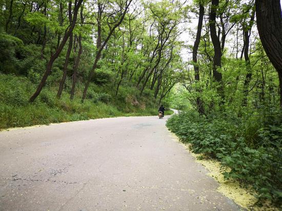 从仰天山脚下开车沿着盘山公路蜿蜒而上,大约3公里之多,一路曲折盘旋,山路陡峭。沿途青山林立,两侧青山如画卷,也有瀑布飞流。放眼望去,层峦叠嶂,这就是入山前的“九龙盘”。夏日远眺,郁郁葱葱,若是秋冬之时,也定是别有一番滋味。尤其是秋日,层林尽染,落叶纷飞,实在是值得期待。
