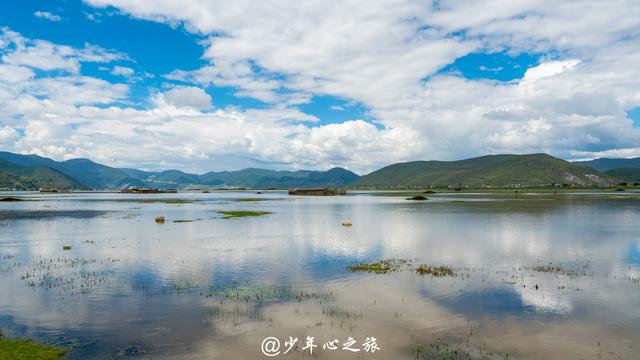 纳帕海,中甸县,的草原,高原季节性湖泊,沼泽草甸,黑颈鹤等候鸟越冬栖息地,适合骑电动车环湖。
