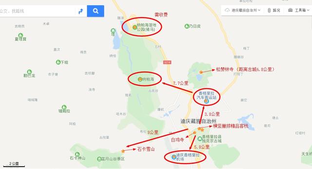 1,独克宗古城、纳帕海按上边路线走,无需门票
