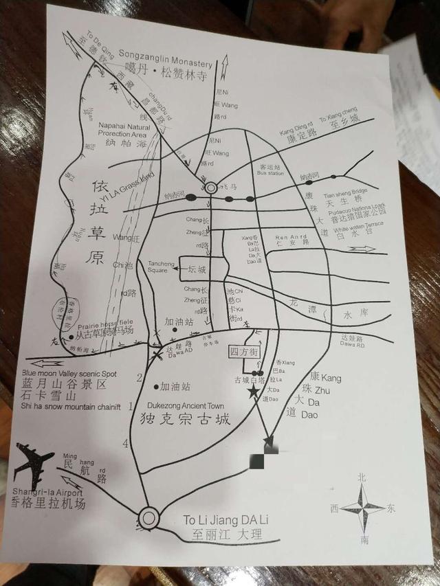 这是香格里拉独克宗古城周边景点分布图,机场和客运站距离古城都非常近,所以香格里拉的大交通还是挺方便的,很多客栈都有免费接送服务。