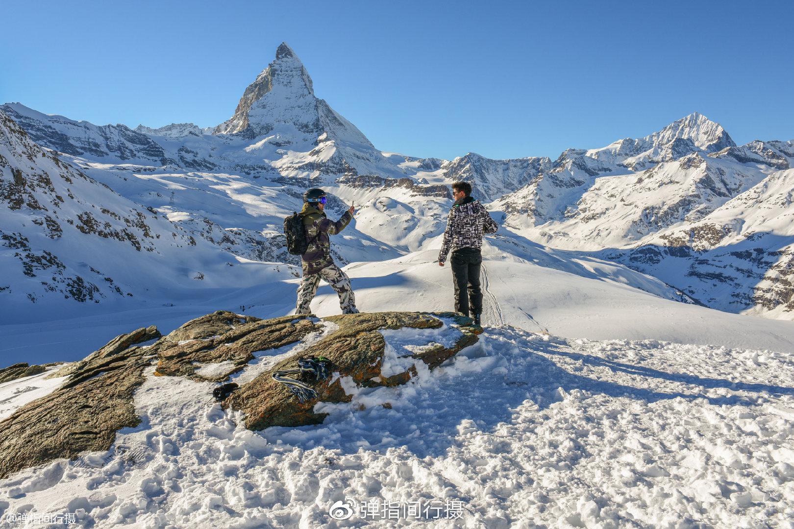 眼前的群山环抱之中,千里冰封的雪山逶迤莽莽,眺望着四周38座海拔在4000米以上的山峰,更显马特洪峰傲然孑立的宏伟和豪迈。