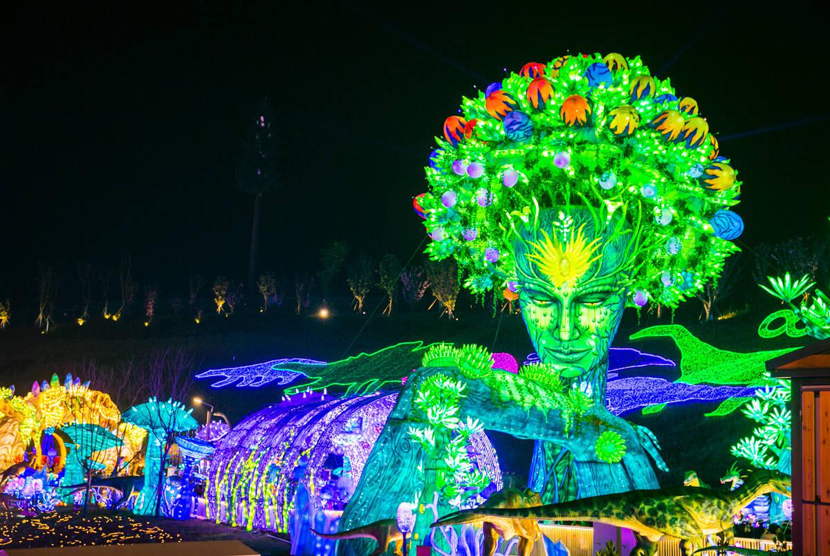 [奇幻侏罗纪]围绕“恐龙时代”主题打造穿越时空的梦幻场景,融合亲子互动、科普互动、光影互动等内容,让人身临其境。网络爆红的一对迷人眼神的彩灯女神就在这里。