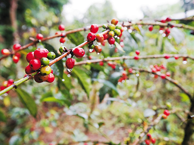 2018年12月8日,在埃塞俄比亚塔普咖啡产区的安得拉赫沙卡咖啡庄园,咖啡树枝头挂满咖啡果。12月正是采摘处理咖啡的高峰期。 |