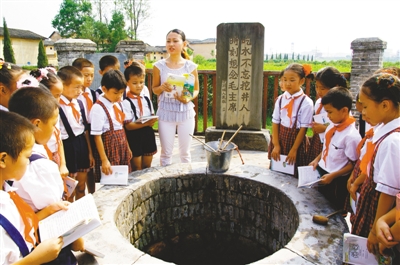 瑞金市的小学生在沙洲坝饮水思源读红井。 |