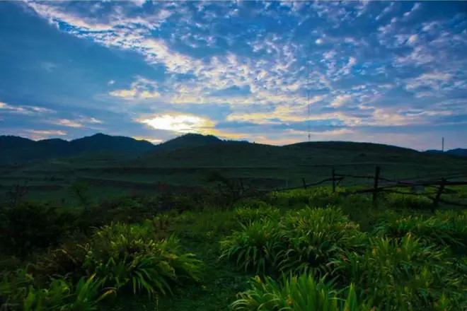 位于贵州省赫章县威奢乡营盘村,距县城40多公里。平均海拔2500多米,坡缓草茂,野花遍野,云雀高飞,牛羊成群,牧歌阵阵。草原中间有风姿绰约的刺竹林,有淙淙流淌的清洌山泉,更增添了它的灵动之美。高天与大地、苍山与萋草、刚硬与柔和,大自然以神奇造化之手,在这里给世人以奇迹般的,呈现!