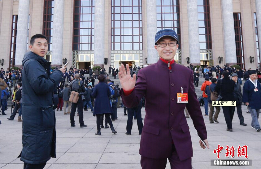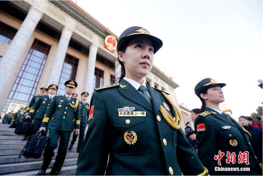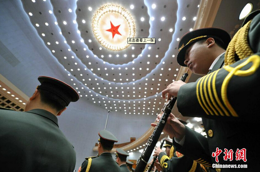 3月13日,全国政协十二届三次会议闭幕会在北京人民大会堂举行。军乐队走出人民大会堂。中新社发 杜洋 摄
