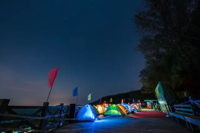 如果天气足够暖和,那么还可以在山顶的平台上来一场露营。晚上,是星云流转的童话。
