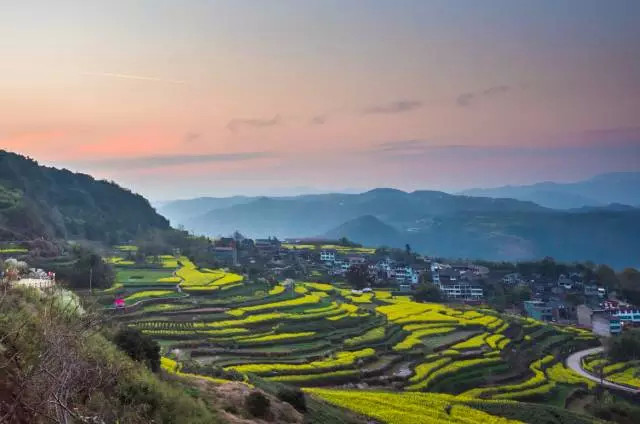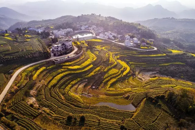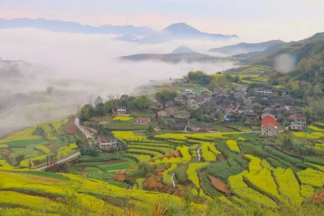 这里的油菜花和婺源的不一样,是呈梯田状分布的,每当雨后或早晨起雾的时候它便,仿若仙境。