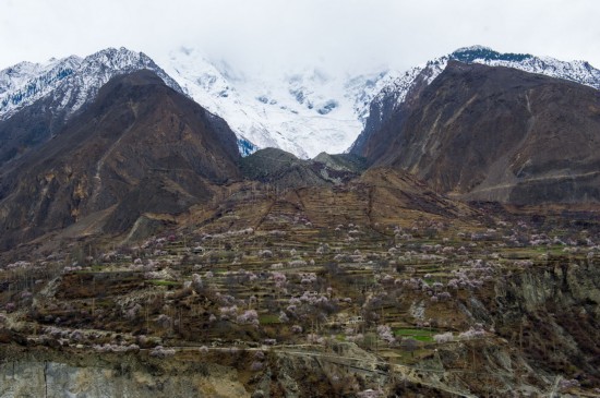 3月24日,巴基斯坦北部吉尔吉特地区密布在河谷两岸的杏花争相吐艳。新华社记者 黄宗治 摄