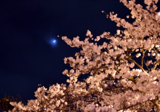 这是4月4日在日本栃木县宇都宫拍摄的月食下的樱花。新华社/法新