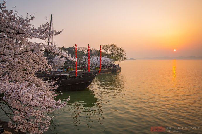等夕阳西下时,鼋头渚更是美如仙境。雪白的樱花,微波的太湖,古朴的长桥,还有那缓缓落下的夕阳,组成了一幅,的画卷。