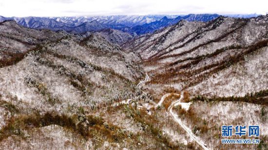 11月5日无人机拍摄的陕西省汉中市佛坪县凉风垭景区雪景。 新华社记者陶明摄