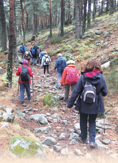 在西班牙瓜达拉马国家公园徒步游览的游客。 |