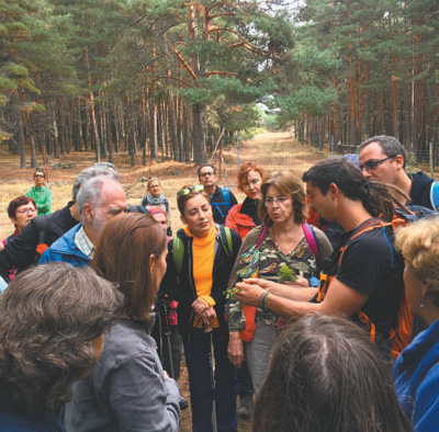 在西班牙瓜达拉马国家公园,导游安赫尔不时停下脚步,为游客讲解沿途遇到的各种动植物的种类、特性等。 |
