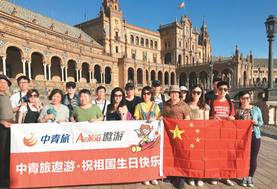 今年国庆黄金周,中国游客在西班牙祝福祖国。 |