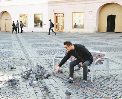 中国游客在罗马尼亚锡比乌广场休闲。 |