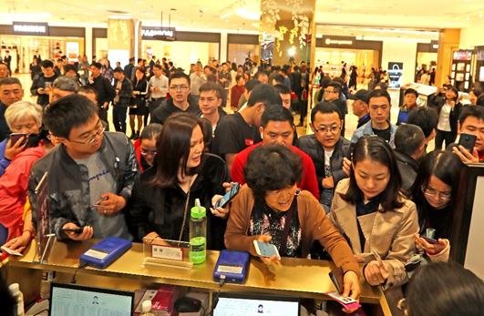 海口日月广场免税店消费者踊跃购买