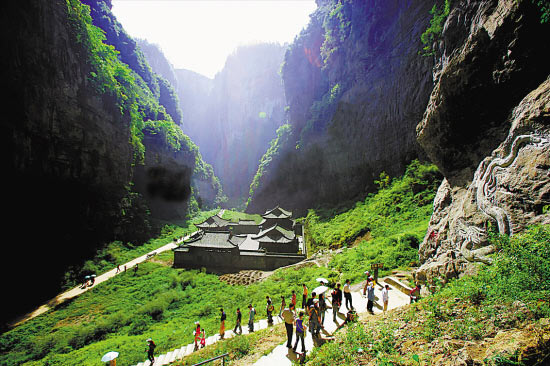 武隆位于重庆东南,地处中国着名山脉——大娄山与武陵山的交错地带,发育形成了中国独有而丰富的溶洞、天坑、地缝、峡谷、峰丛等地质奇观,拥有国家,风景名胜景区、国家地质公园、国家AAAA级旅游区等国家荣誉称号,是长江三峡库区集雄、奇、险、峻、秀、幽、绝等特色于一身的旅游胜地。