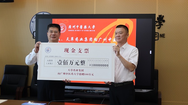 在广州中医药大学即将迎来建校百年之际,天草药业集团向广州中医药大学捐赠100万元,为学校的建设和发展注入强大动力。