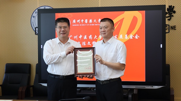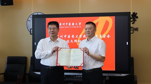 △广州中医药大学党委书记、教育发展基金会理事长陈文锋颁发感谢状及捐赠证书